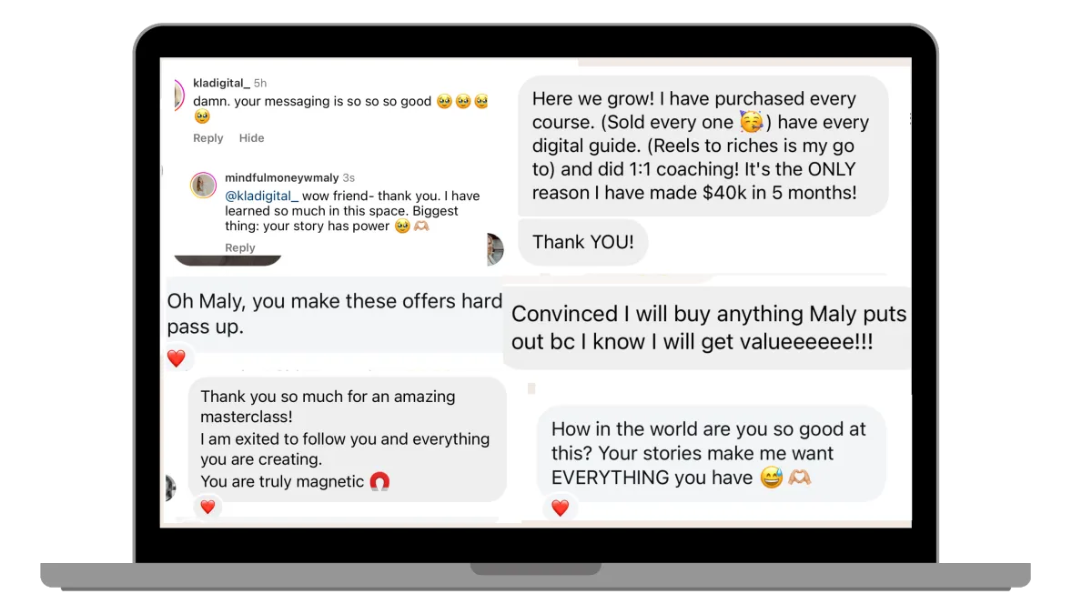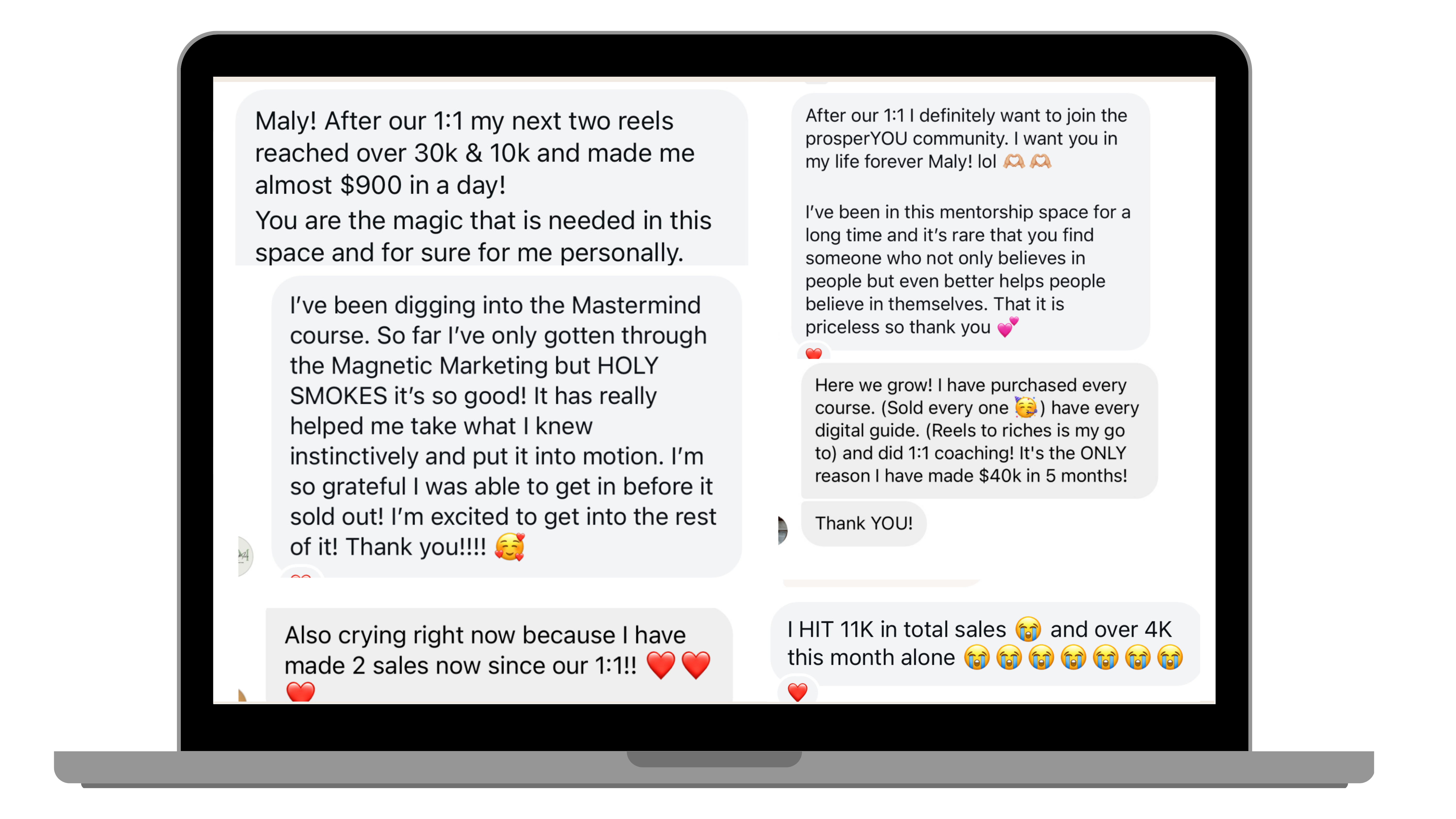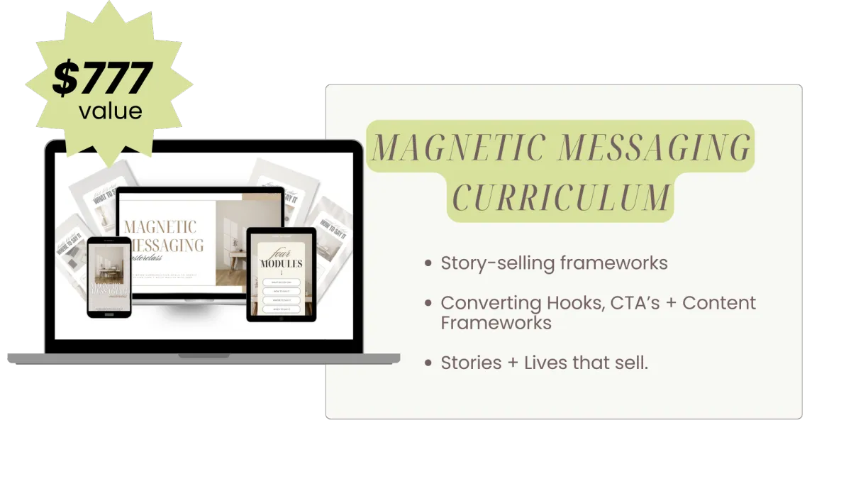 Maly I earned 12K in my first 48 days selling digital products and it all started with purchasing Magnetic Messaging. I had one coaching student sell this class 11 times in two weeks. This is exactly what this online space needs!