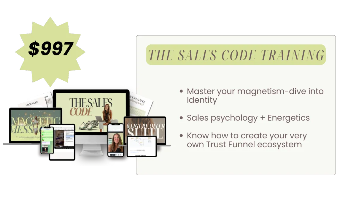 Clarify your identity as a saleswoman, anchor your story into a magnetic message, and learn the emotional sales psychology that creates instant trust, resonance, and connection.